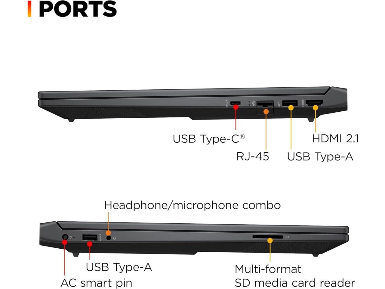 SuperSpeed USB Type-C 5Gbps (DisplayPort 1.4, HP Sleep and Charge), SuperSpeed USB Type-A 5Gbps (HP Sleep and Charge), SuperSpeed USB Type-A 5Gbps, Ethernet Port (RJ45), Headphone/microphone combo, HDMI 2.1; Intel Wi-Fi 6 (2x2) + Bluetooth 5.3