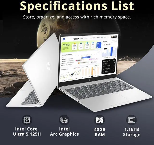 The HP 15.6" FHD Touchscreen Laptop offers smooth multitasking and vibrant visuals with Intel Core Ultra 5 125H and Intel Arc graphics.