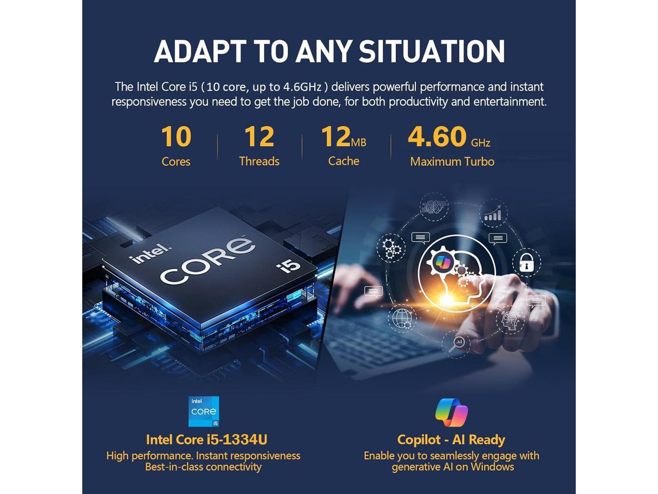 [Processor] 13th Gen Intel Core i5-1334U 1.30GHz Processor (Up to 4.6 GHz, 12MB Cache, 10-Cores, 12-Threads, 2 Performance-cores)