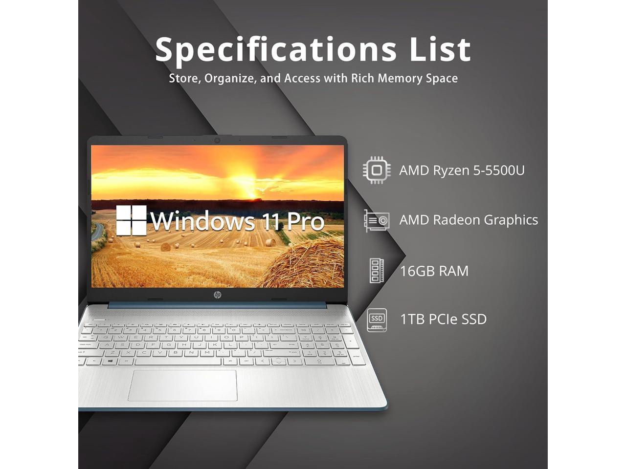 HP 15.6" FHD Laptop, AMD Ryzen 5-5500U Processor, 16GB RAM, 1TB PCIe SSD, AMD Radeon Graphics, 720P HD Webcam, Bluetooth, Wi-fi, Win 11 Pro, Blue, 32GB Hotface USB Card