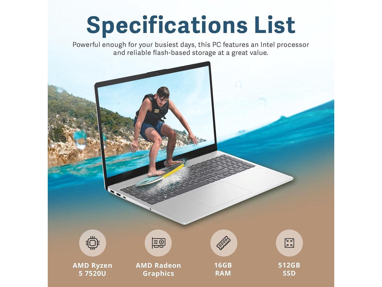 - AMD Ryzen 5 7520U ProcessorExperience a perfect balance of performance and efficiency with a powerful processor, delivering smooth multitasking, reliable performance, and impressive power savings, making it an excellent choice for everyday computing tasks.