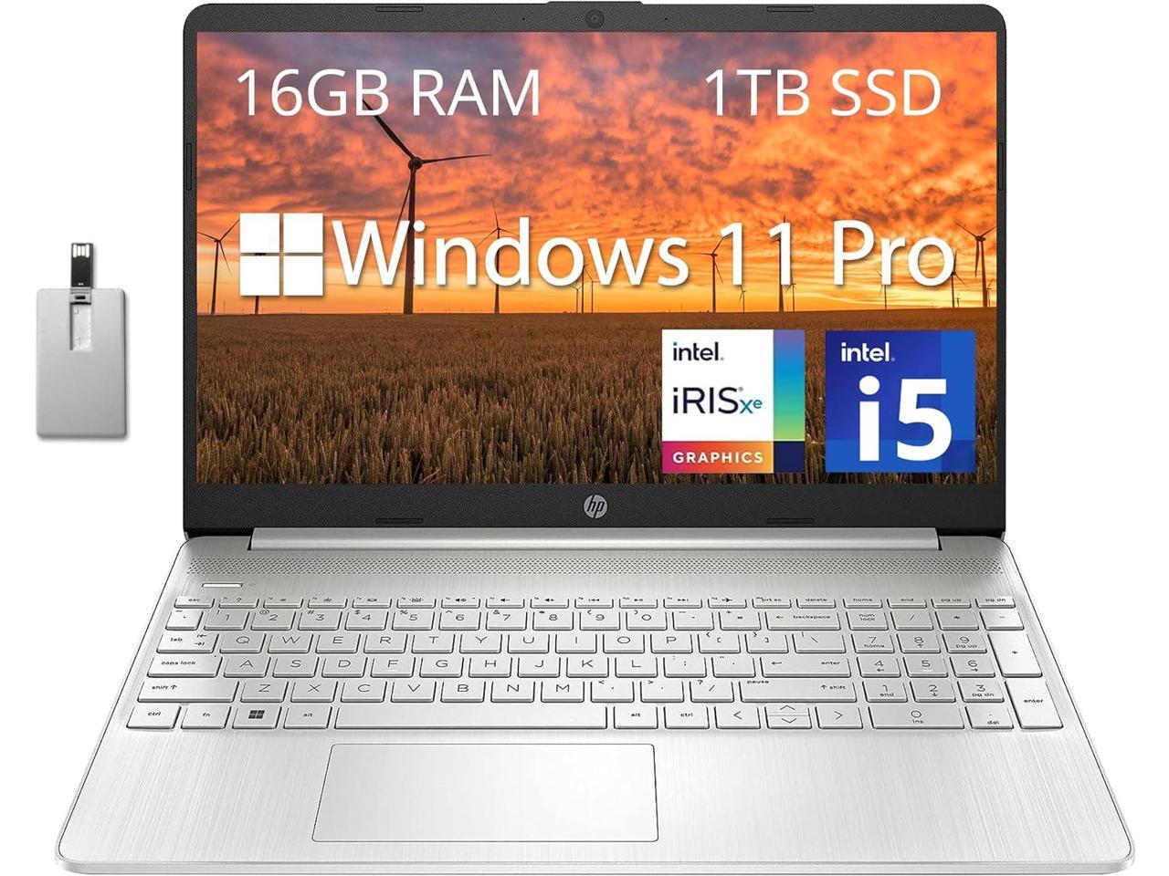 HP 15.6" FHD Business Laptop, Intel Core i5-1135G7, 8GB DDR4 RAM, 256GB PCIe SSD, Intel Iris Xe Graphics, Numpad, Webcam, Wi-Fi 5, Silver, Win 11 Pro, 32GB Hotface USB Card