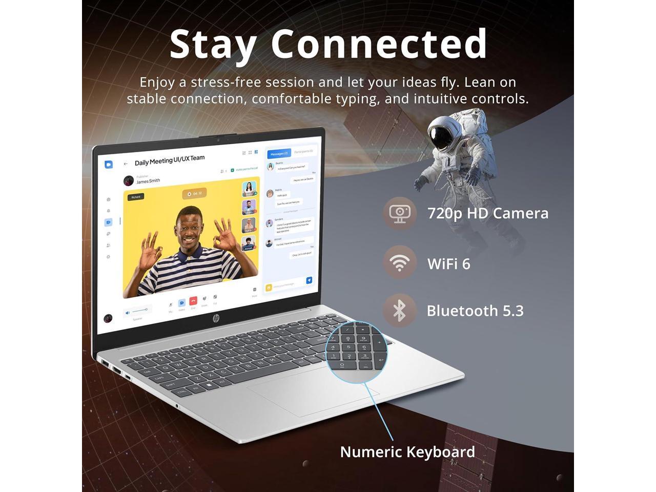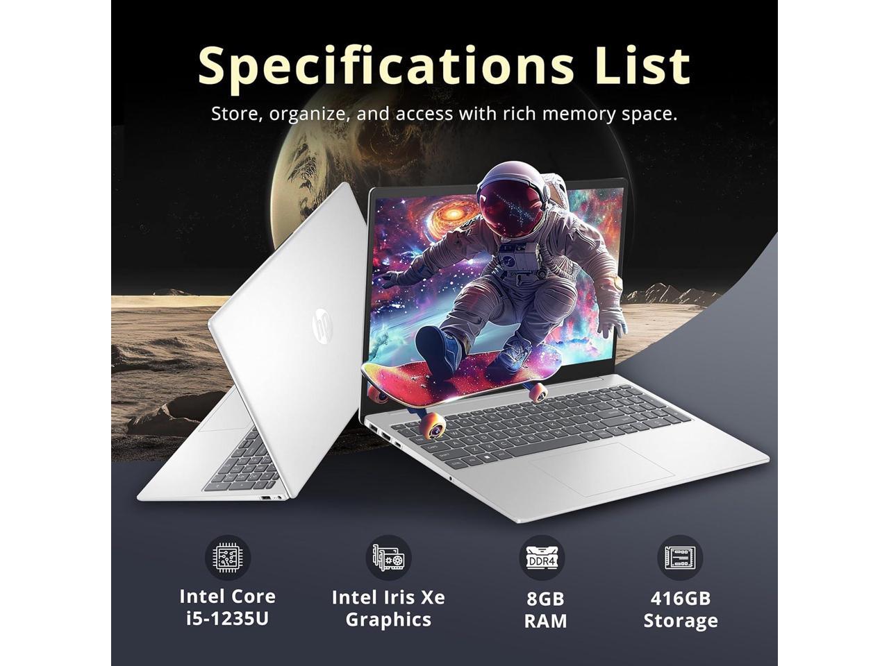 HP 15.6" FHD IPS Laptop, Intel i5-1235U, 8GB RAM, 416GB Storage(256GB SSD + 160GB Docking Station Set), Intel Iris Xe Graphics, Numeric Keypad, Webcam, Wi-Fi 6, Windows 11, Silver