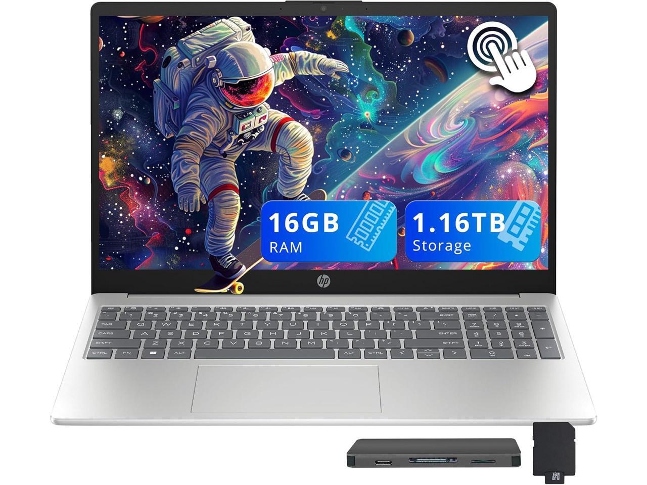 HP 15.6" HD Touchscreen Laptop, Intel i3-1315U, 16GB RAM, 1.16TB Storage(1TB SSD + 160GB Docking Station Set), Intel UHD Graphics, Full Size Keyboard, HD Camera, Wi-Fi 6, Windows 11, Silver