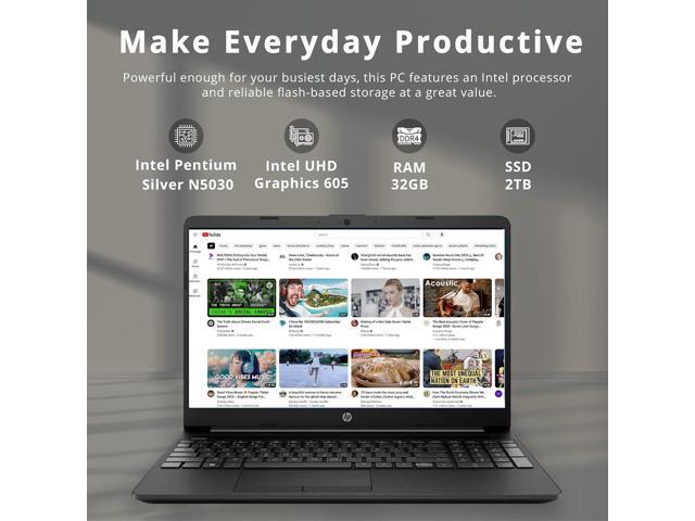 HP 15.6 HD Student Laptop, Intel Pentium Silver N5030, 32GB RAM, 2TB SSD, Intel UHD Graphics, HD Webcam, Numpad, Wi-Fi 5, 1 Year Office 365, Win 11, Black, 32GB USB Card