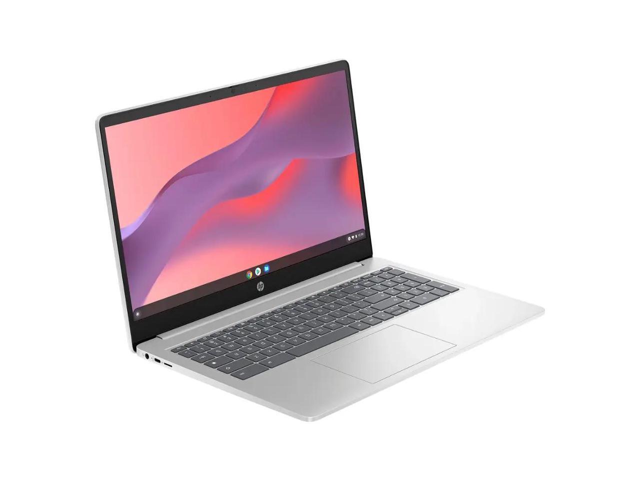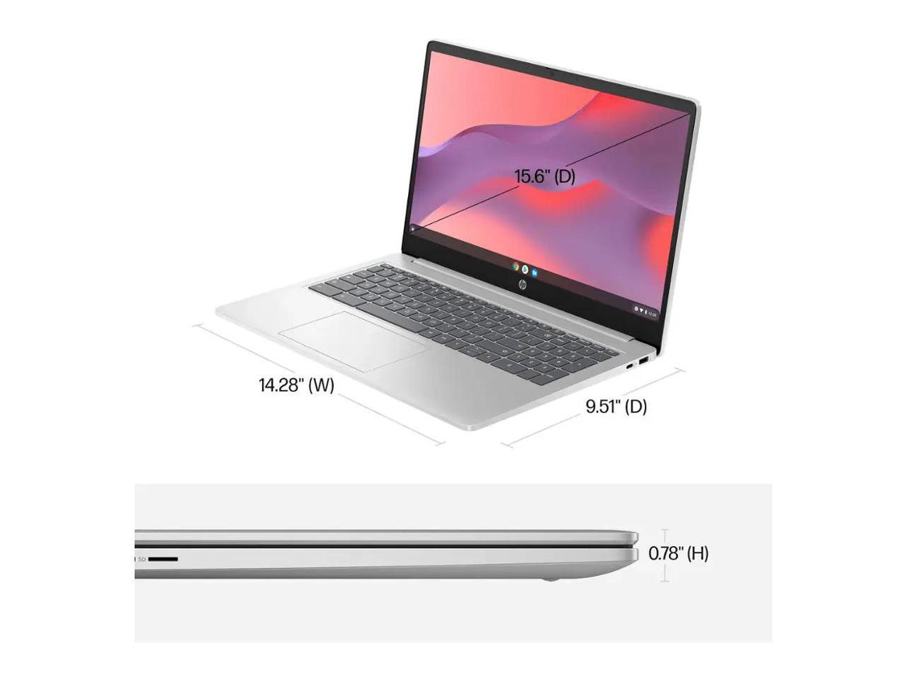 HP 15.6" HD Chromebook Laptop |Intel Processor N200|Intel UHD Graphics| WIFI| Webcam| Silver | 8GB RAM DDR5 | 64GB SSD |Chrome OS |Bundle with Mouse Pad
