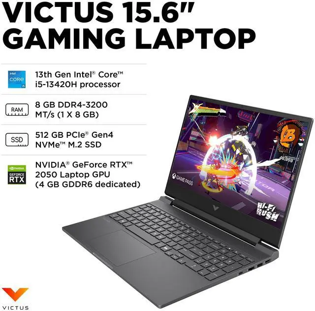 VICTUS 15-fa2000 15-fa2500nr 15.6" Gaming Notebook - Full HD - Intel Core i5 13th Gen i5-13420H - 8 GB - 512 GB SSD - Mica Silver - Intel Chip - 1920 x 1080 - Windows 11 Home - NVIDIA GeForce RTX