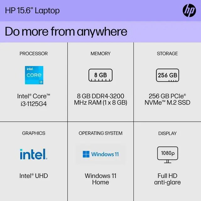 The 7H384UA HP 15.6 -inch 15-dy2713st is a sleek and efficient laptop featuring a 15.6 -inch Full HD anti-glare display, providing a crisp and clear viewing experience. Powered by an 11th Generation Intel Core i3-1125G4 processor clocked at 1.2 GHz (up to 3.7 GHz with Turbo Boost), this laptop offers reliable performance for everyday computing tasks. With 8GB DDR4 RAM and a speedy 256GB PCIe NVMe M. 2 SSD, it ensures smooth multitasking and fast data access. Play your favorite games like Fortnite, Counter Strike, Rocket League, Minecraft, Valorant, Grand Theft Auto & More without compromise.