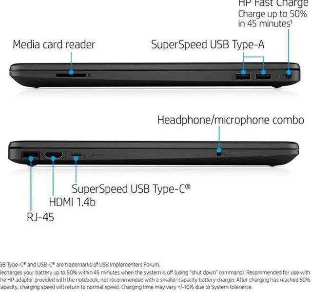 - HP Fast Charge: Go from 0 to 50% charge in approximately 45 minutes.