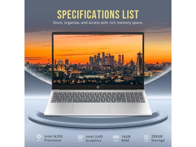 HP 15.6" HD Laptop, Intel Pentium N200, 16GB DDR4 RAM, 288GB Storage (128GB SSD+160GB Docking Station Set), Intel UHD Graphics, Full Size Keyboard, 720p Camera, 1 Year Office 365, Win 11, Silver