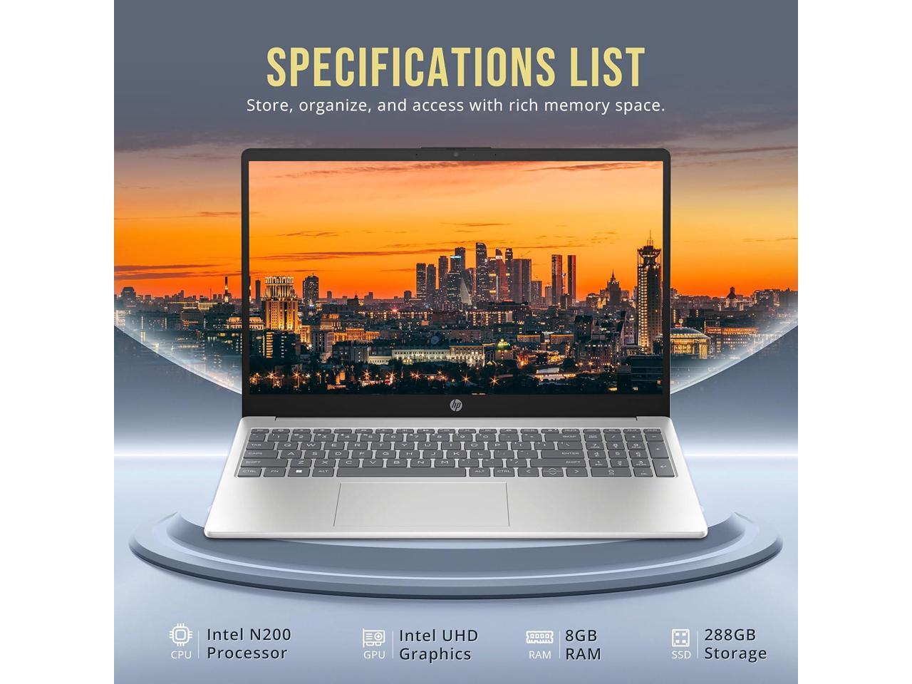 HP 15.6" HD Laptop, Intel Pentium N200, 8GB DDR4 RAM, 288GB Storage (128GB SSD+160GB Docking Station Set), Intel UHD Graphics, Full Size Keyboard, 720p Camera, 1 Year Office 365, Win 11, Silver