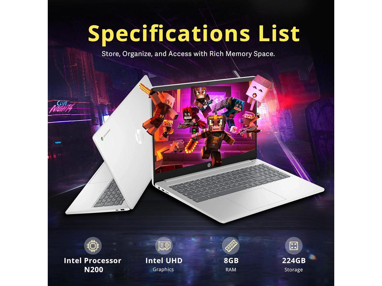 HP 15.6" HD Anti-Glare Chromebook Laptop, Intel Pentium N200, 8GB LPDDR5, 224GB Storage (64GB eMMC+160GB Docking Station Set), Intel UHD Graphics, Num Pad, 720p Camera, Wi-Fi 6, Chrome OS, Silver