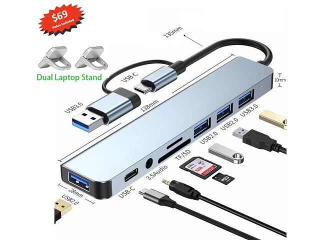 - [Feature] HB USB Hub and Laptop Stand set; Intel UHD Graphics, 1 x HDMI 1.4, 1 x USB-C 3.0, 2 x USB-A 3.0, Bluetooth, Wi-Fi, 3-cell 45 watts, 720p webcam HD Audio with stereo speakers, 14.11 x 9.53 x 0.71 inches, 3.75 lbs