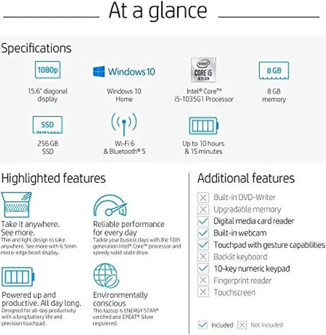 Your career essential: With Wi-Fi 6 (2x) and Bluetooth(R) 5 connections, HP True Vision HD webcam and an integrated numeric keypad, this 15-inch laptop has all the essential features you need for a pr