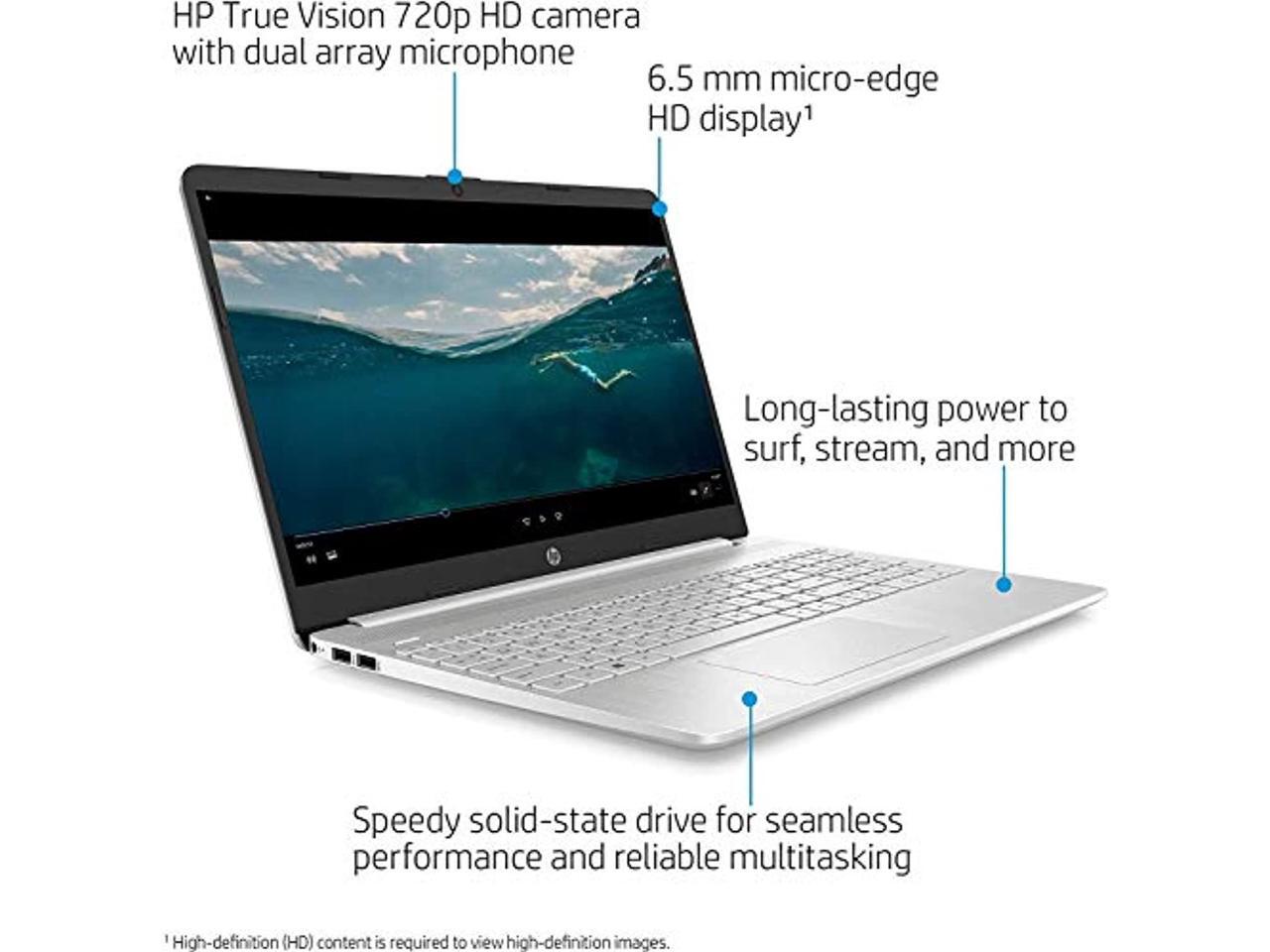 HP 15.6" HD LED Laptop PC, Intel Core i3-1005G1 Processor, 8GB RAM, 128GB SSD, Wi-Fi 5, HDMI, Webcam, Bluetooth, Windows 10 S, Natural Silver, W/ Valinor Accessories (HP15-dy103m)