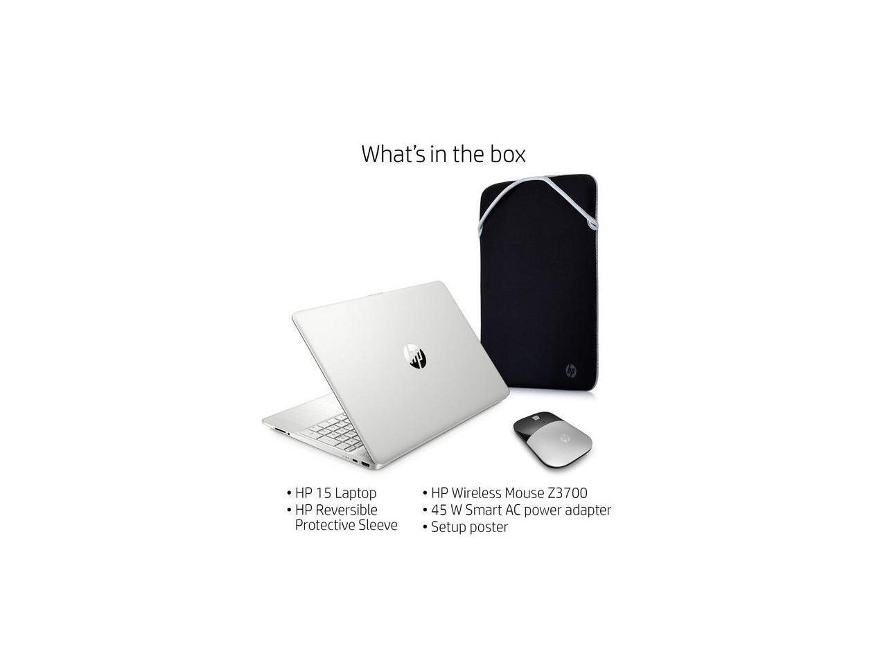 HP 15.6", Athlon N3050, 4GB RAM, 128GB SSD, Wireless Mouse, Sleeve, Silver, Windows 10 Home in S mode with Microsoft 365, 15-ef1071wm Laptop Notebook