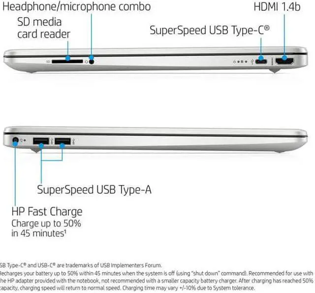 The AMD Athlon Silver processor works together with AMD Radeon graphics to give you high performance for games, movies and daily tasks. This silver laptop bundle comes with accessories you need to start the day right away. A reversible protective sleeve keeps your HP laptop computer stylish and safe as you travel. The laptop bundle with wireless mouse is color-matched to the sleeve and keeps you productive while removing a cord from your workspace. Transfer files quickly and save them to your device with room to spare in the 128 GB solid-state drive storage or use the 1 TB of OneDrive cloud storage included with your one year subscription of Microsoft 365.