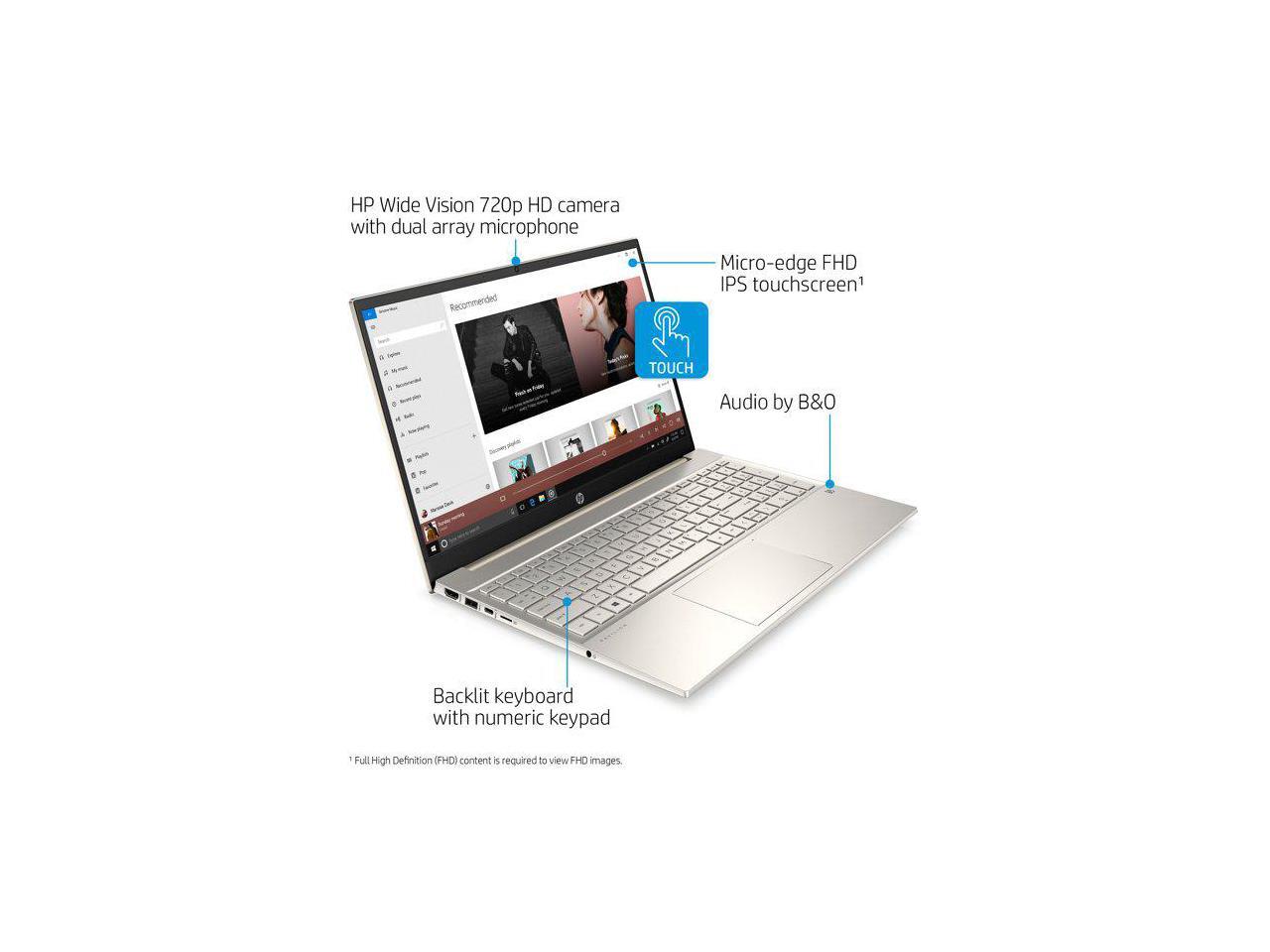 HP Pavilion 15.6" FHD Touch, Intel Core i5-1135G7, 8GB RAM, 512GB SSD, Lunar Gold, Windows 10, 15-eg0050wm