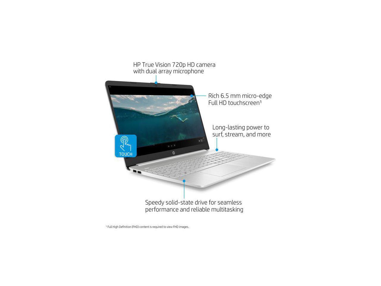 HP 15.6" FHD Touch, Intel Core i3-1115G4, 8GB RAM, 256GB SSD, Silver, Windows 10 (S mode), 15-dy2132wm
