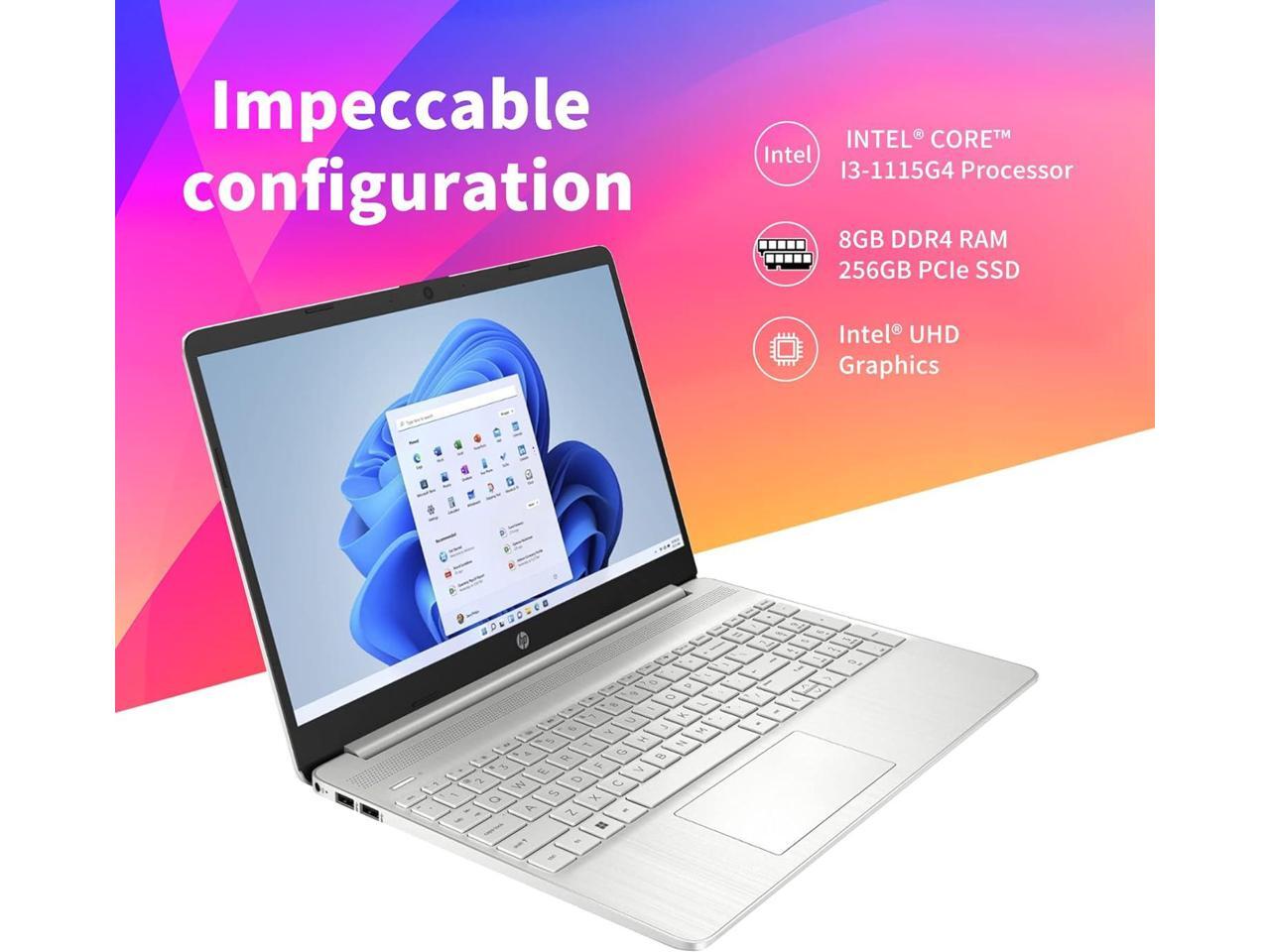 HP 15 Laptop, 15.6" Full HD (1920 x 1080) Display, Intel Core i3-1115G4 2 Cores Processor, Intel UHD Graphics, 8GB DDR4 512GB PCIe SSD, WiFi, Bluetooth 4.2, Webcam, Windows 11