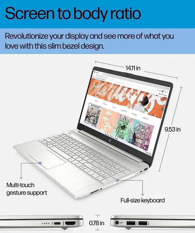 Display: 15.6-inch diagonal, HD (1366 x 768), micro-edge, Bright View, 250 nits, 45% NTSC