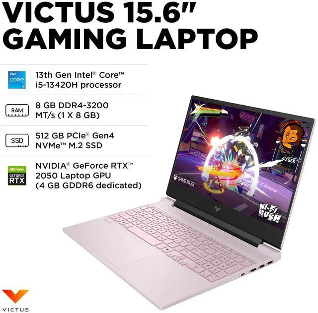 The HP Victus 15.6" Gaming Laptop PC is perfect for both newcomers and experienced gamers who want great, stable performance for their favorite games. The HP Victus Laptop is made for great PC gaming on the go. This sleek machine touts a powerful Intel Processor and NVIDIA graphics. This laptop's design is just as impressive as its hardware with plenty of color options, updated thermals and a webcam camera with Temporal Noise Reduction.