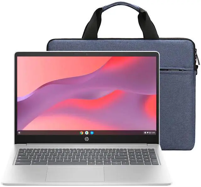 HP 15.6" CHROMEBOOK LAPTOP - INTEL PROCESSOR N200 2023 - 8GB MEMORY - 64GB EMMC - NATURAL SILVER + SPLASH PROOF LAPTOP BAG