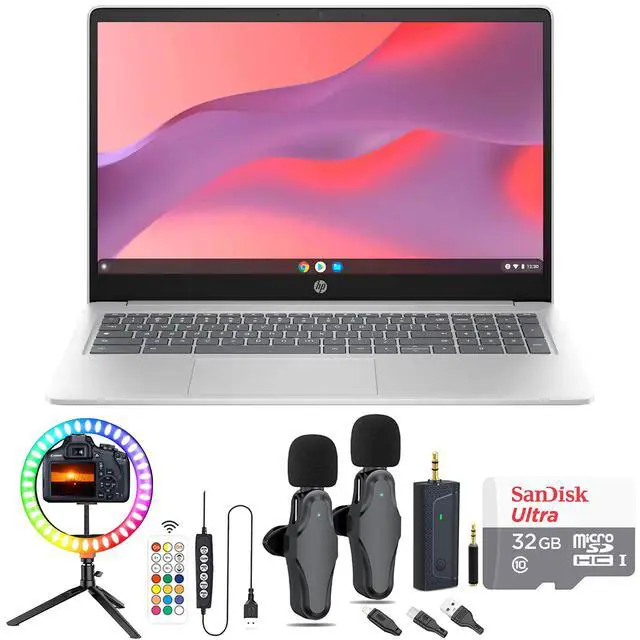 HP 15.6" CHROMEBOOK LAPTOP - INTEL PROCESSOR N200 - 8GB MEMORY, 64GB EMMC (NATURAL SILVER) COMPLETE CREATOR BUNDLE