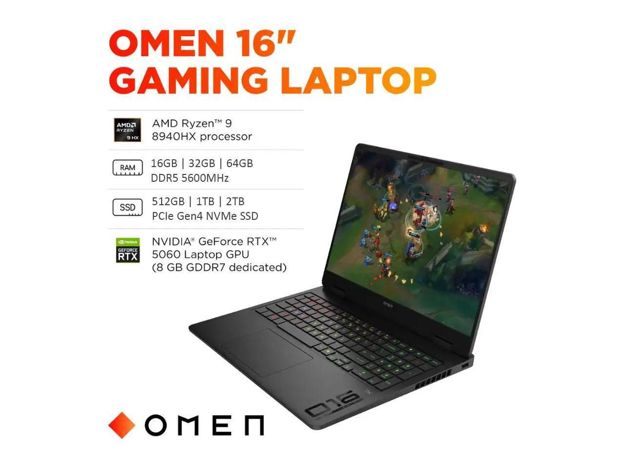 HP OMEN 16" IPS FHD+ 144Hz Gaming Laptop NVIDIA GeForce RTX 5060 8GB GDDR7 AMD Ryzen 9 8940HX (> i9-14900HX) 16GB DDR5 RAM 1TB SSD RGB Backlit KB HDMI 2.1 Wi-Fi 6E BT 5.3 Win 11 Home Shadow Black