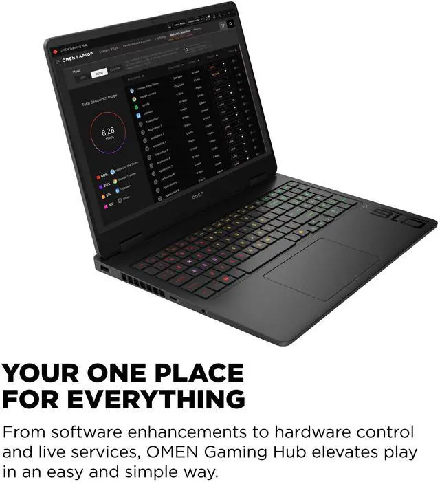 Keyboard:Full-size, 4-zone RGB backlit, shadow black keyboard with numeric keypad, 26-Key Rollover Anti-Ghosting Key technology