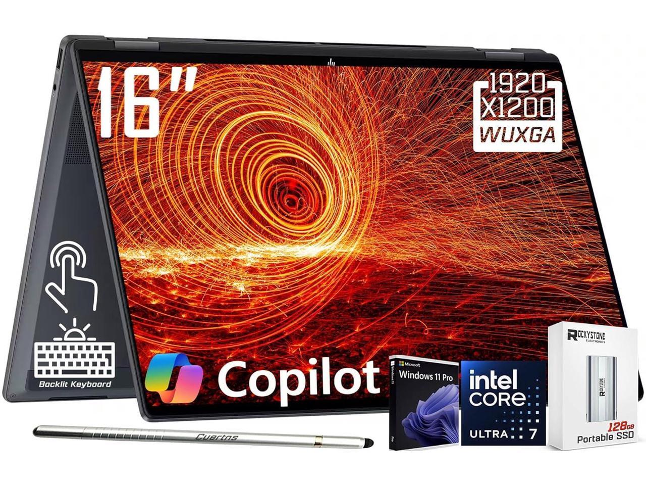 HP OmniBook X Flip 16" 2-in-1 Copilot+ AI PC Laptop, 2K 400nits Touch, Intel Evo 8-Core Ultra 7 258V(>Ultra 9 185H), WiFi 6E, DTS X Ultra, Backlit KB, W/128GB PSD&Stylus, Win11 PRO(32GB|2TB SSD)