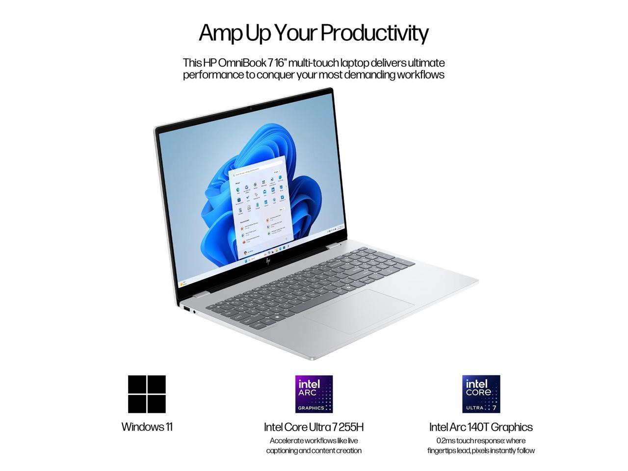 HP OmniBook 7 16" Touchscreen Laptop - Intel Core Ultra 7 255H, 2K OLED 120Hz Display, 32GB RAM, 1TB SSD, AI Camera, Wi-Fi 7, Backlit Keyboard, Bundle With Mytrix Cooling Pad Assy, Windows 11 Pro