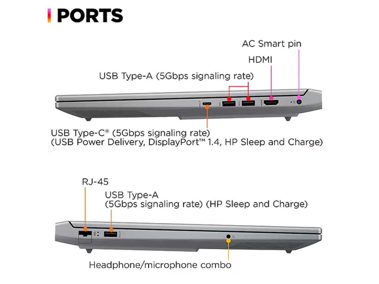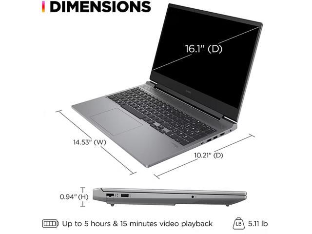 - [Feature] Windows 11 Home; RGB Backlit Keyboard; HyperX Audio; 1 x USB Type-C; 3 x USB Type-A; 1 x RJ45, 1 x headphone/microphone combo, 1 x AC smart pin, 1 x HDMI ports; Wi-Fi 6E AX211 (2 x 2), Bluetooth 5.3; 802.11ax; 4-cell 70Wh lithium-ion polymer; 14.53 x 10.21 x 0.94 inches; 5.11 lbs