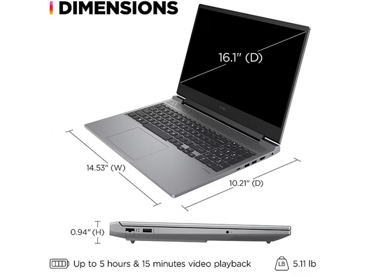 HP Omen Gaming 16.1" FHD 144Hz NVIDIA RTX 4060 G-SYNC Intel core i7-14650HX (Beats i9-13900HX) 32GB DDR5 RAM 1TB SSD RGB Backlit KB HDMI Webcam Thunderbolt 4 WiFi 6E Bluetooth 5.3 Windows 11 Home