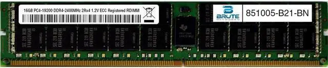 851005-B21-BN is a HP compatible 16GB PC4-19200 DDR4-2400MHz 2Rx4 1.2V ECC Registered RDIMM, equivalent to HP labeled PN#: 851005-B21. Brute Networks modules are all major brand (Samsung, SK Hynix, or Micron). This module is guaranteed compatible with your computer, as well as guaranteed to maintain your factory warranty, since Brute Networks modules are from the same manufacturers HP uses for their OEM branded modules.