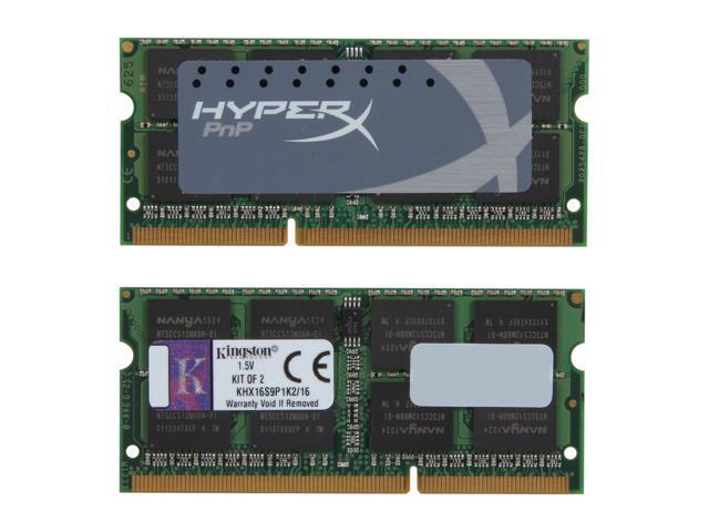 HyperX 16GB (2 x 8GB) 204-Pin DDR3 SO-DIMM DDR3 1600 Laptop Memory HyperX Plug n Play Model KHX16S9P1K2/16