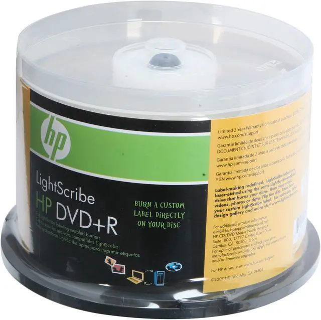 HP 4.7GB 16X DVD+R LightScribe 50 Packs Spindle Disc Model 02094