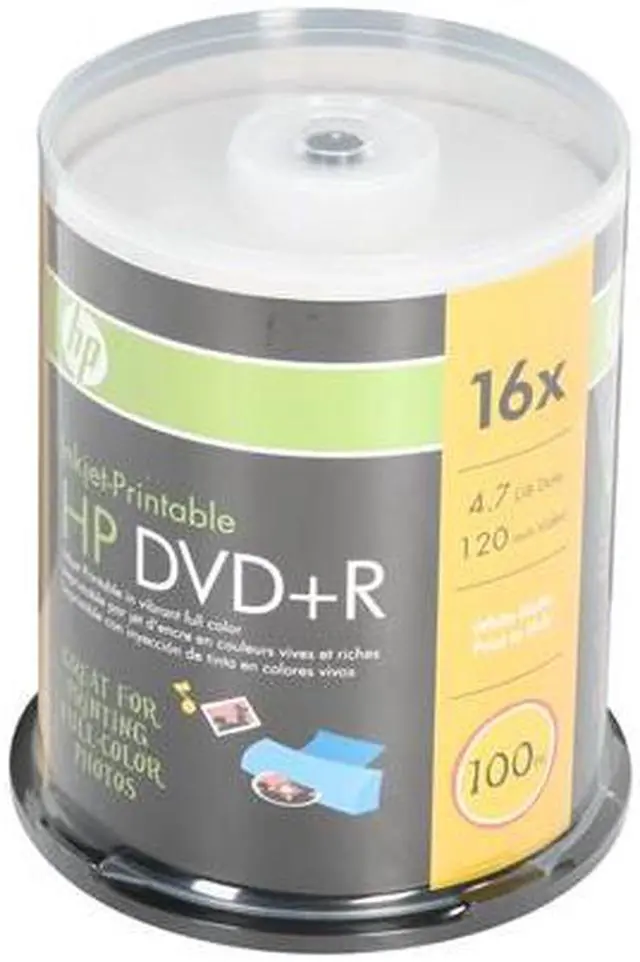 HP 4.7GB 16X DVD+R Inkjet Printable 100 Packs Spindle Disc Model 02055