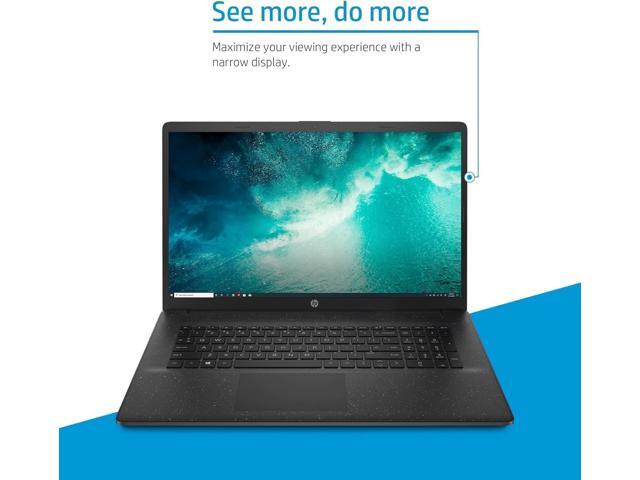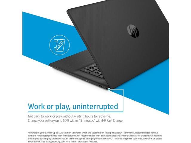 - The HP 17 Laptop has a 17.3" screen, narrow bezels, and a lift-hinge design. With HP Fast Charge, go from 0 to 50% in 45 minutes.