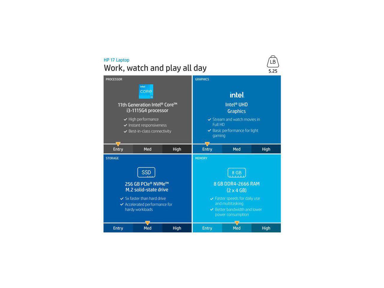 Newest HP 17.3" HD Laptop, 11th Intel Core i3-1115G4, 16GB RAM, 512GB SSD, Card Reader, HDMI, Webcam, Wi-Fi, Bluetooth, Windows 11 Home, Natural Silver, JAWFOAL HDMI Cable