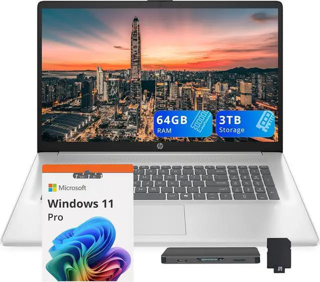 The HP 17.3" FHD Business Laptop offers smooth performance with Intel Core i7-1355U, Iris Xe graphics, and a full-size keyboard with numeric pad and Copilot.