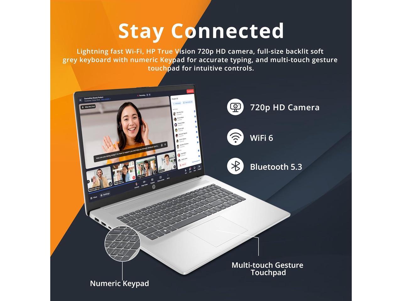 - Full-Size Backlit Keyboard with Numeric KeypadIntel GraphicsHP True Vision 720p HD Camera