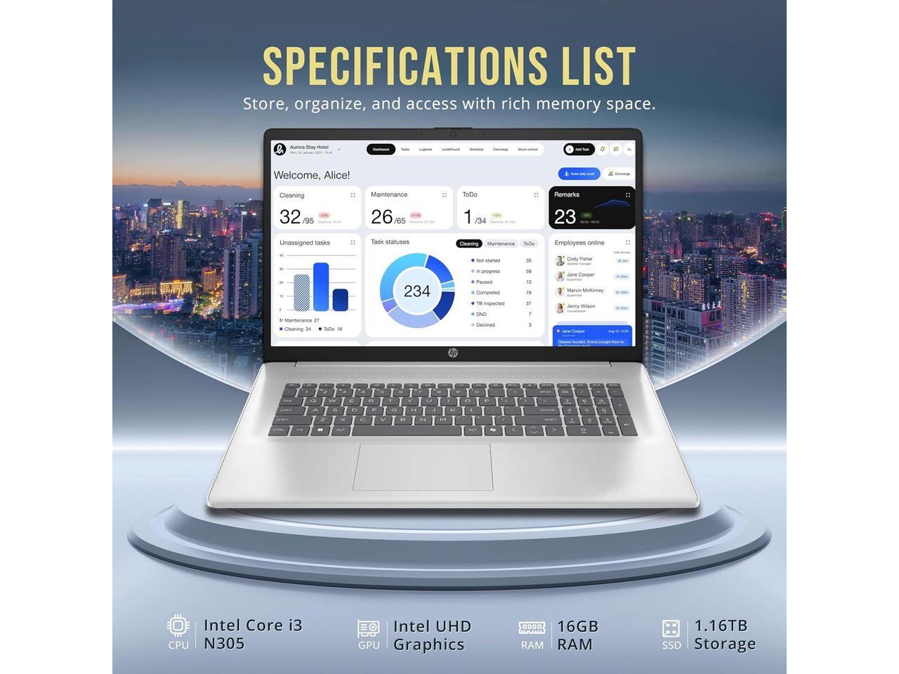 HP 17.3" HD+ Business Laptop, Intel i3-N305, 16GB RAM, 1.16TB Storage (1TB SSD+160GB Docking Station Set), Intel UHD Graphics, Numeric Keypad, 720p Webcam, Copilot, Wi-Fi 6, Windows 11 Pro, Silver