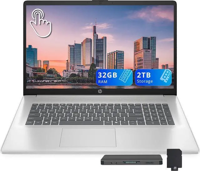 HP 17.3" HD+ Touchscreen Laptop, Intel Ultra 7 255U, 32GB RAM, 2TB Storage (1TB SSD+1TB Docking Station Set), Intel Graphics, Numeric Keypad, Copilot, Windows 11 Home, Silver