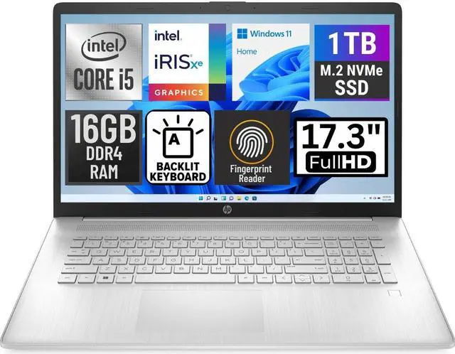 The HP 17-cn2008ca is a 17.3 -inch FHD IPS laptop designed for high performance and expansive visuals. It is powered by an Intel Core i5-1235U processor and features 16GB of DDR4 RAM, providing robust performance for multitasking and demanding applications. The 1TB SSD offers ample storage space and fast data access. Equipped with Intel Iris Xe Graphics, this laptop ensures impressive visual quality.
