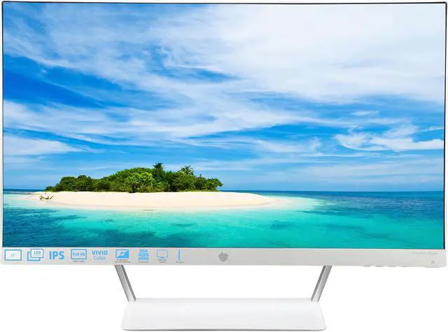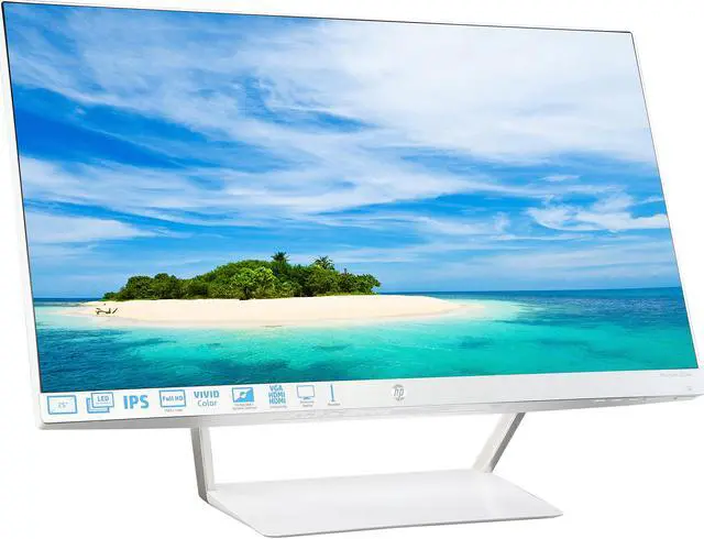 Enjoy your photos, videos and games from almost any angle with brilliant, crisp imagery. The HP 25XW IPS LED backlit monitor provides ultra-wide viewing with a 10,000,000:1 dynamic CONTRAST ratio, certified Technicolor, and crisp Full HD resolution on an edge-to-edge bezel-less screen. One VGA and two HDMI inputs connect with multiple devices and help reduce the hassle of cable swapping. Plus, with an elegant, border-less design and an arresting wedge stand, this HP monitor will be a great addition to any desk of your home or office.