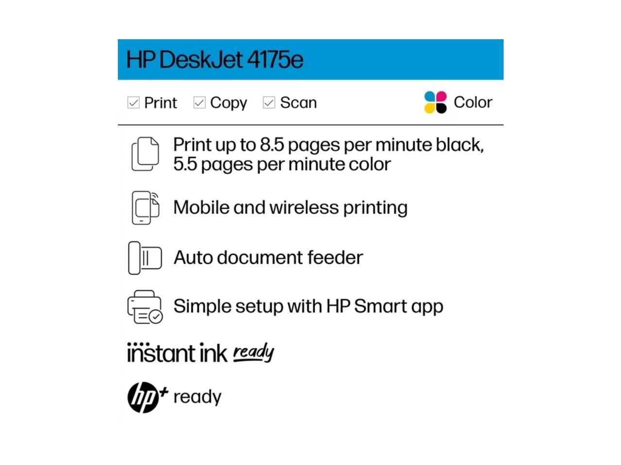 HP DeskJet 4175e All-in-One Wireless Color Inkjet Printer with 6 Months Instant Ink Included with HP+