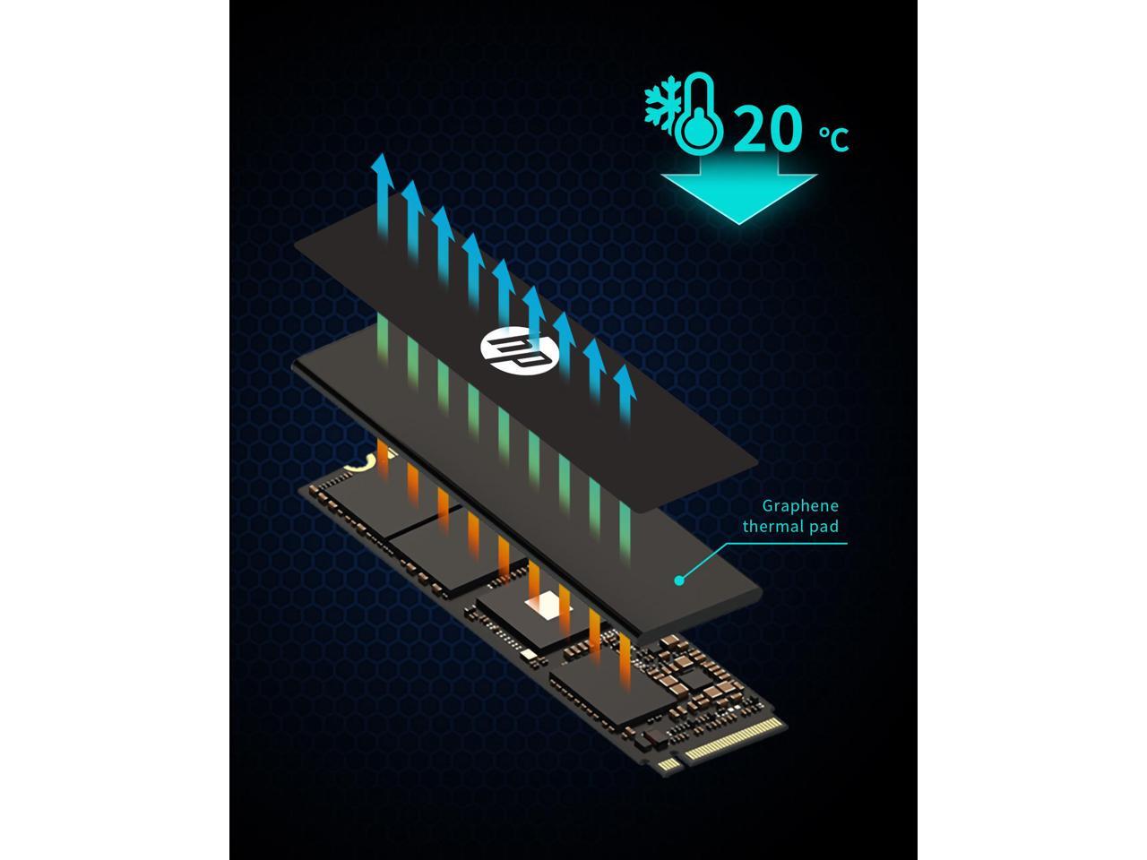 - Using graphene foam with high thermal conductivity, the working temperature is effectively reduced by about 20 °. This heat dissipation design is able to reliably reduce performance fluctuations and ensures the fast speed and stable operation of SSD.