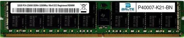 Brute Networks P40007-K21-BN is an OEM compatible 32GB PC4-25600 DDR4-3200Mhz 1Rx4 ECC Registered RDIMM , equivalent to HP labeled PN#: P40007-K21