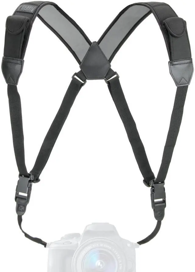 This adjustable harness provides a comfortable fit for photographers of all shapes and sizes. Change the length to support your camera and fit your body the way you want it to.
